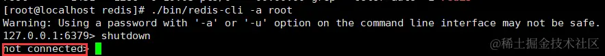 我们正常关闭reids服务,首先我们需要登录到redis客户端,然后执行shutdown操作