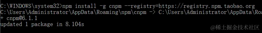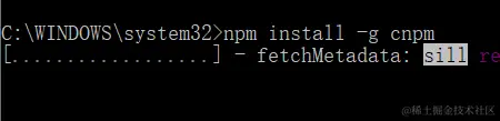 可以看出,这样在npm下安装cnpm还是有点慢的,ctrl+c终止,我们直接用淘宝下的包安装,这里的-g是global(全局的)