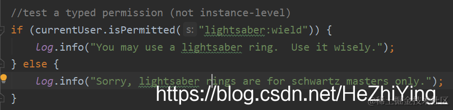 if (currentUser.isPermitted("lightsaber:wield")) {