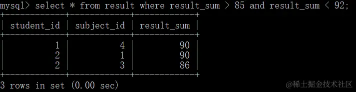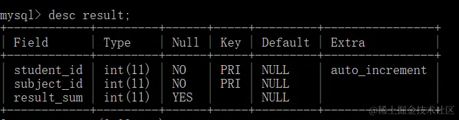 对查询结果去重(distinct),查询result表中的成绩,查看哪些学生参加了考试,需要对结果进行去重