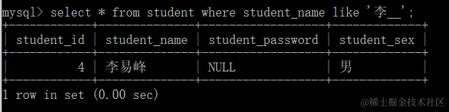 查询姓李的同学,名字只有一个字的