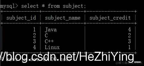 有一个学生科目(subject)表
