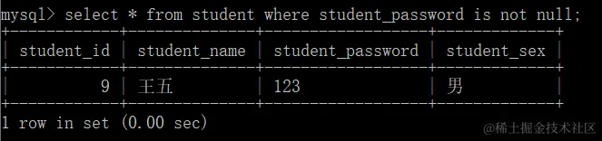 查询密码非空的同学信息is not null