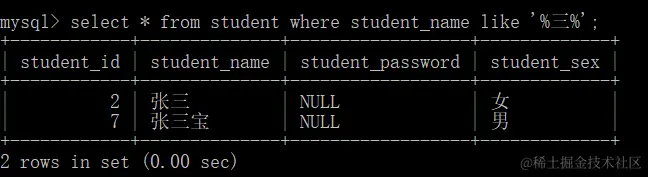 like可以结合%使用,其中%代表0到任意个字符,也可以结合_使用,_代表1个字符