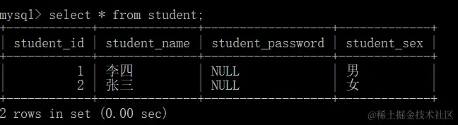 查询密码为空的同学信息is null