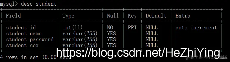 下面演示多个字段的表,这里以student表为例