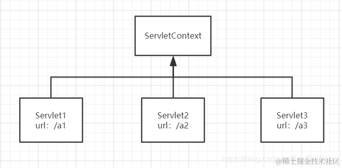 如果我们想要在不同的Servlet中进行访问,那么就需要我们新的东西参与了,这个东西就是ServletContext上下文对象,这里以一张图进行简单的描述,我们的Servlet都是被这个ServletContext管理的,这个可以实现不同用户之间的数据共享问题