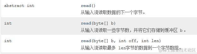 InputStream:这个抽象类是表示输入字节流的所有类的超类,这是它的部分方法