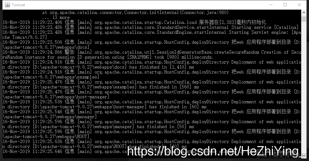 如果出现了中文乱码,可以参考Tomcat执行start文件后有乱码,当环境变量配置的没问题时,就可以把tomcat关闭了,点击bin目录下的shutdown.bat即可