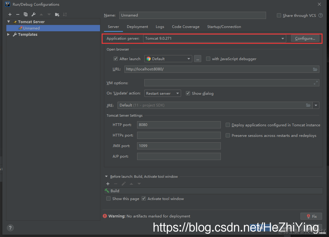 配置你的Tomcat的路径,如左图,这就将你的Tomcat集成到了IDEA中了,右图是将你的项目部署到Tomcat中