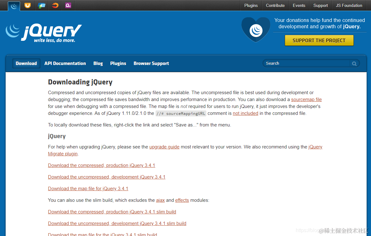 在这里介绍一下jQuery的官网下载jquery.com/download/