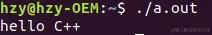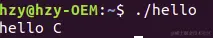 在这里需要注意,编译的时候默认是生成a.out文件,这里也可以自定义编译的文件名,这里以编译出hello为例,命令如下