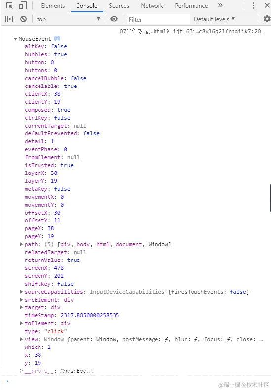 事件对象,也就相当于一个形参,是系统自动设置的,里面有很多的参数,这里截图展示下