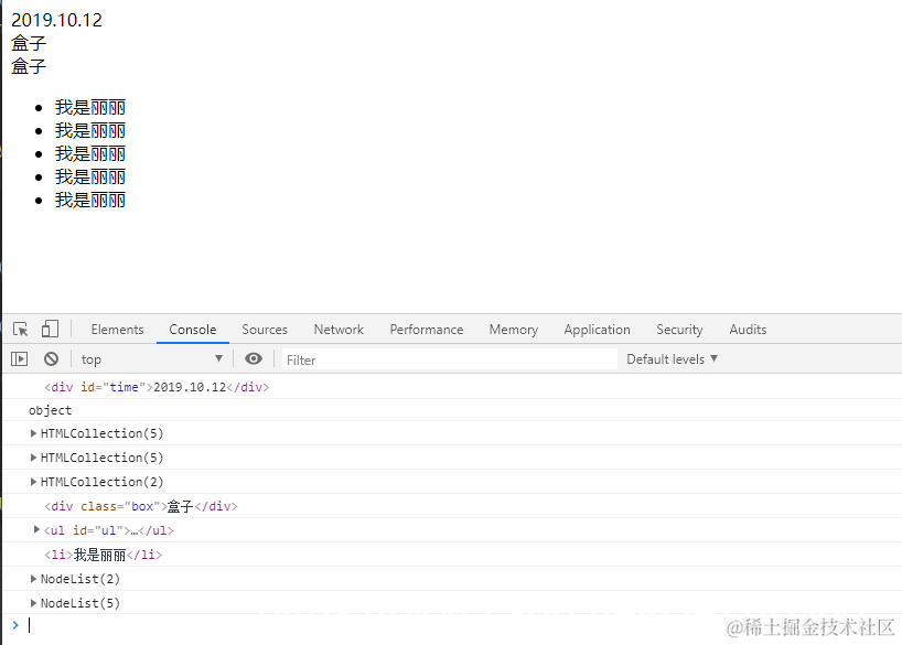 console.log(time);//这里就获得了<div id="time">2019.10.12</div>元素