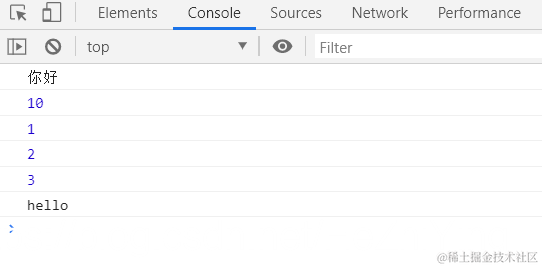 console.log('你好');