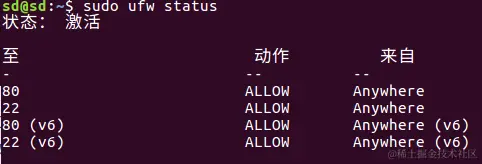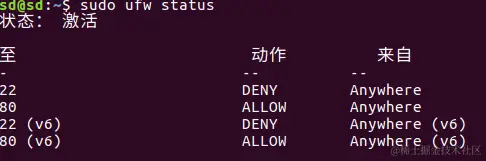 你现在是不是有个疑问,就是我想删除22端口,为什么还要加上deny或者是allow呢,直接用sudo ufw delete 22多好呀,是的,还真有这个命令,这个22表示的是第22行,如果你想要删除第一行,那就是sudo ufw delete 1