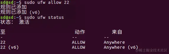 则删除该规则的命令是:sudo ufw delete allow 22