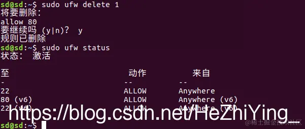 执行sudo ufw delete 1