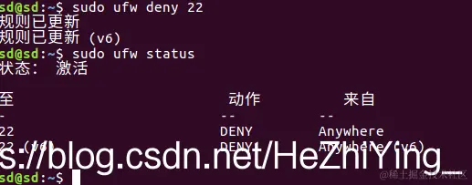 则删除该规则的命令是:sudo ufw delete deny 22