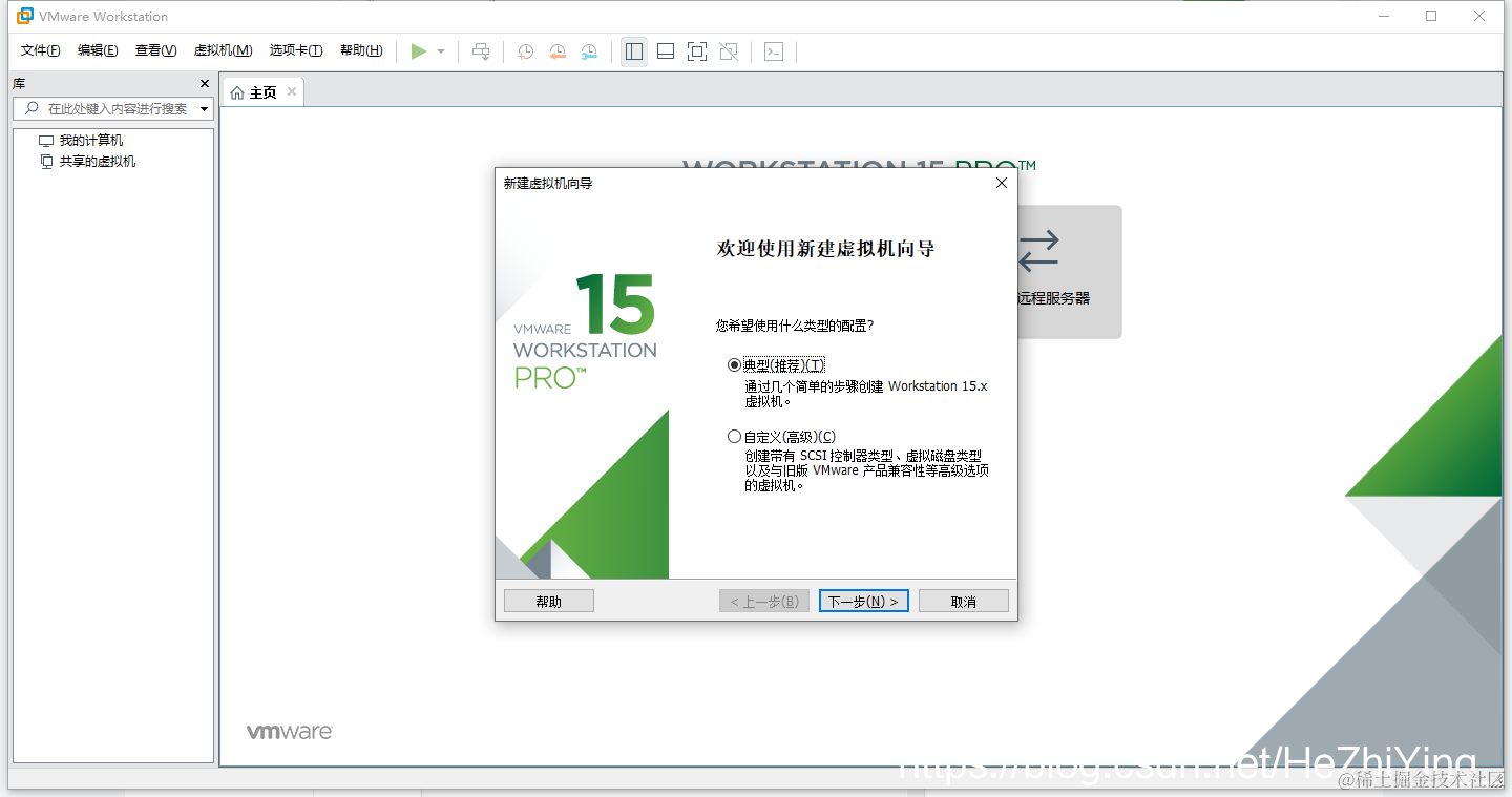然后点击创建新的虚拟机,会有如下界面,然后下一步