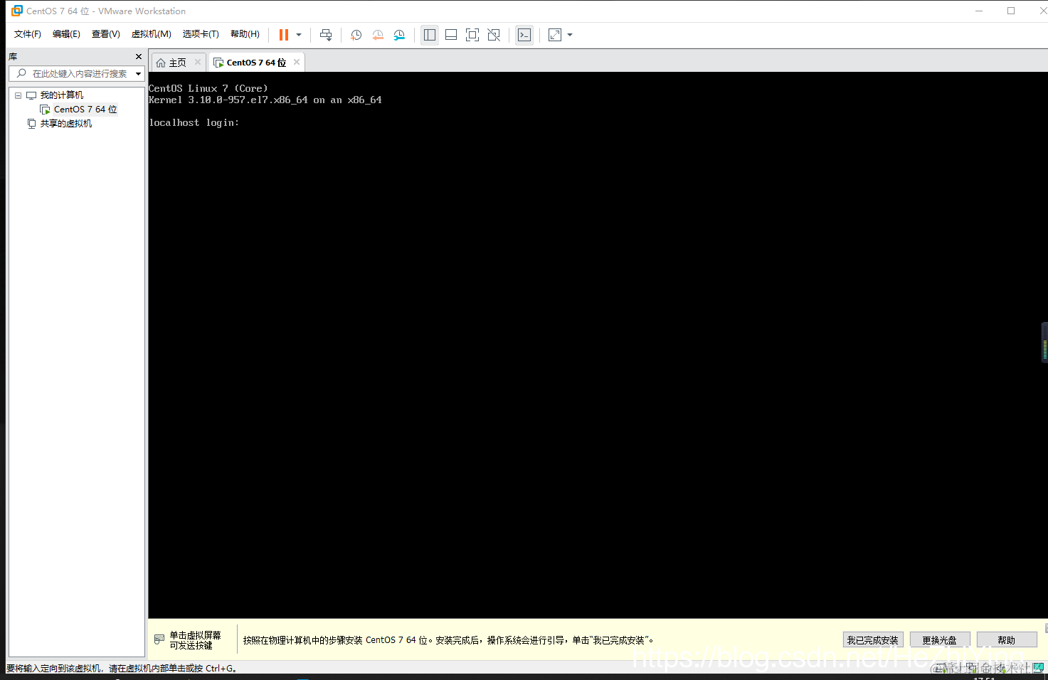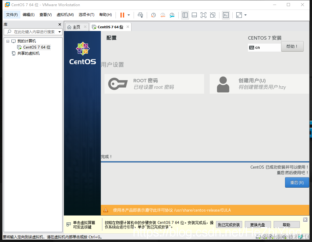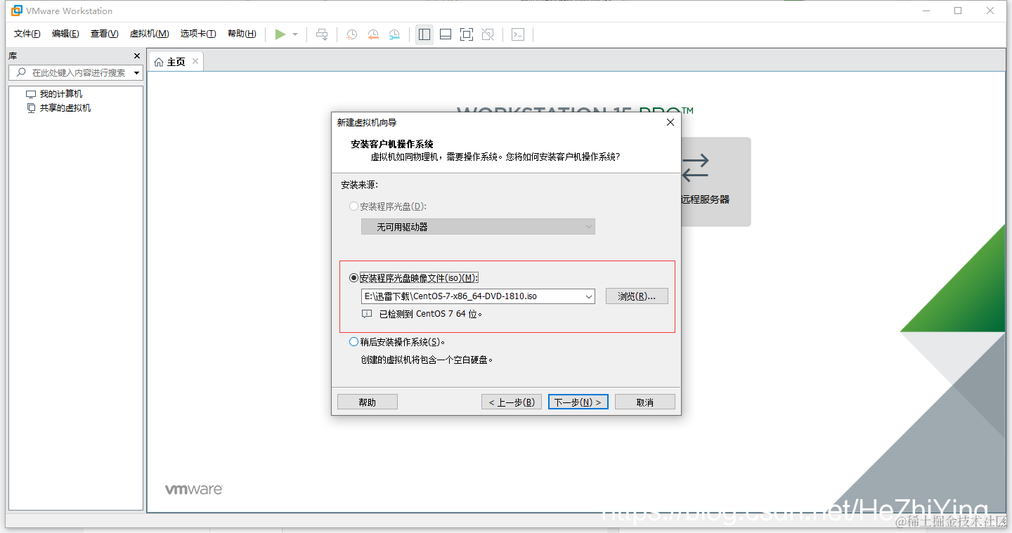 此安装版本Linux镜像为CentOS7,虚拟机为VMware15
