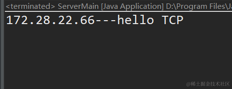 这里是,ServerMain,这是服务器端的运行结果,显示出来了客户端发来的信息