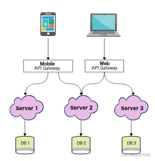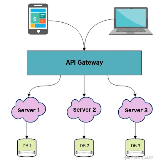 从对BFF的上述理解来看,由于BFF是前端和后端访问的中间层服务,因此BFF和API网关有什么区别?首先让我们看一下API网关的常见实现。(可以通过多种方式设计API网关。这里仅是三个示例。)