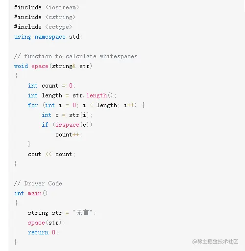 给定一个字符串,我们需要使用isspace()函数计算字符串中的空白字符数。