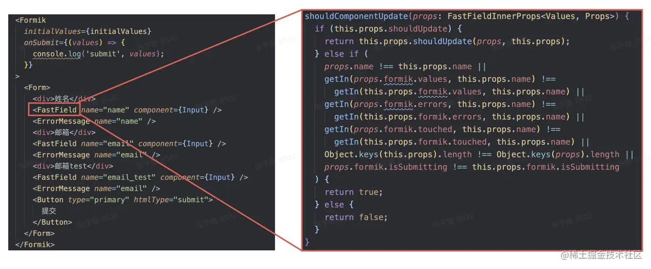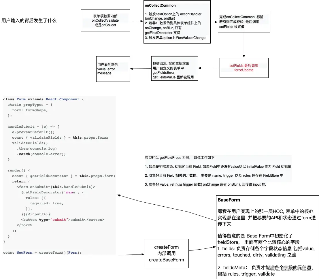 当然表单本身不算复杂,特点鲜明,不管是源码还是暴露的 API 都比较有年代感,一看就能看出是 class component 时代的产物。