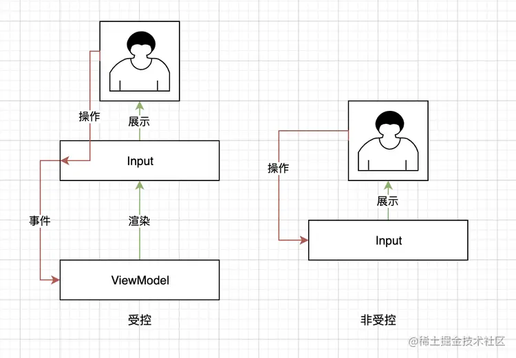 关于受控 vs 非受控的选择,我查阅了许多资料,大部分文档认为应该优先考虑受控模式,可惜还是没有找到一个能让人信服的理由。大量文档无非是列举受控之于非受控更灵活,更 React 单项数据流,感觉更像是为了政治正确而不是基于真实的开发体验来看这个东西。甚至有一张广为流传的对比图: