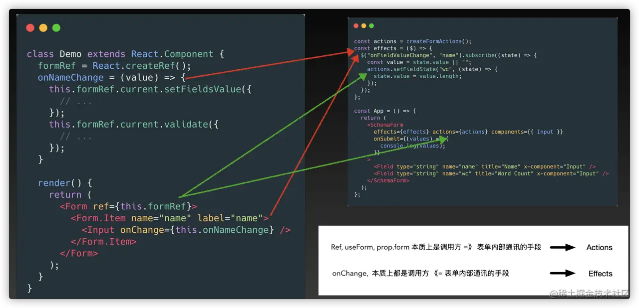 首先用 effects 收敛各种表单行为,联动逻辑这真是一大创举,对比其他方案挂在组件上的各种 onChange 回调散落在整个视图层,这个收敛对于代码的可读性的提高确实有很大帮助。