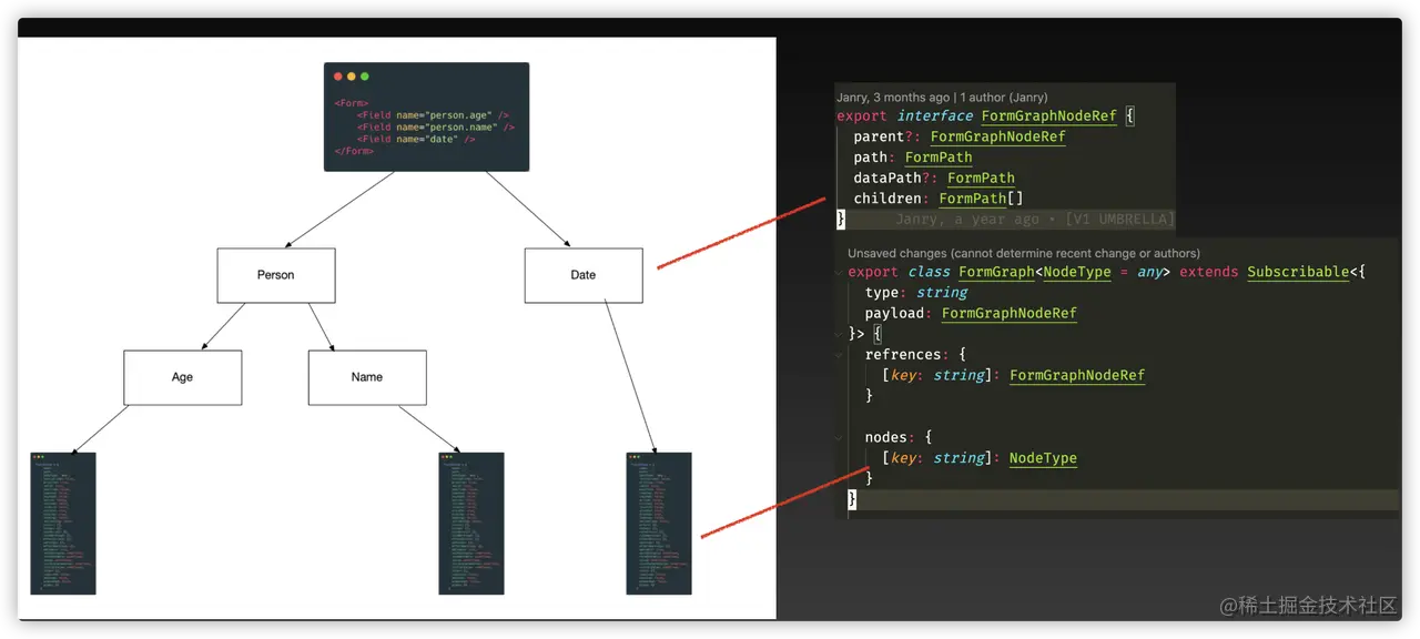 仔细想想,这其实是很自然的,因为在有嵌套数据的场景下,表单的天然结构就是一棵树。可以说,这颗树就是表单的完全表达,结合之前的 effects,表单所有的交互都能在 effects 内部闭环,因为 Formily 的数据层是可以做到 UI 层的完全表达的。