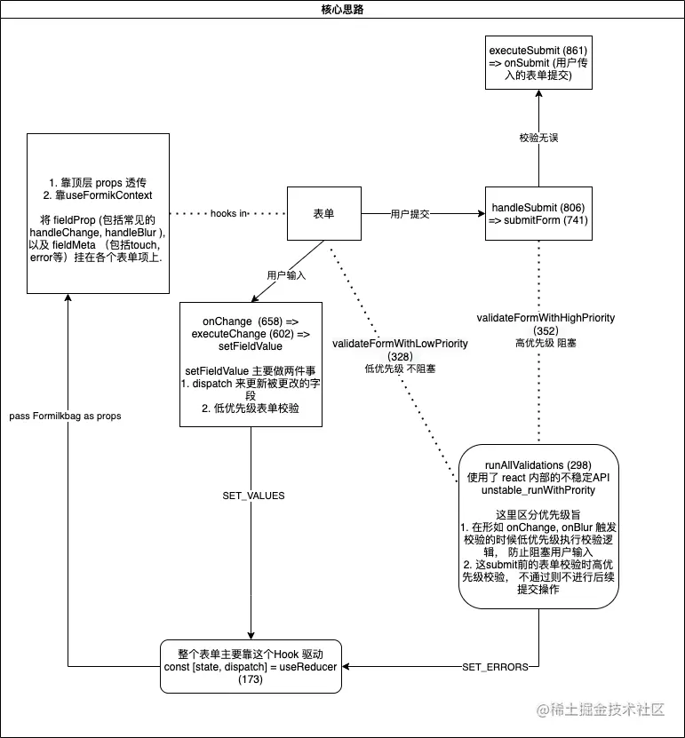 它并不需要依赖任何 React 相关的 hooks/callback 就能实现自己的链路闭环,整体的链路我大概理了下: