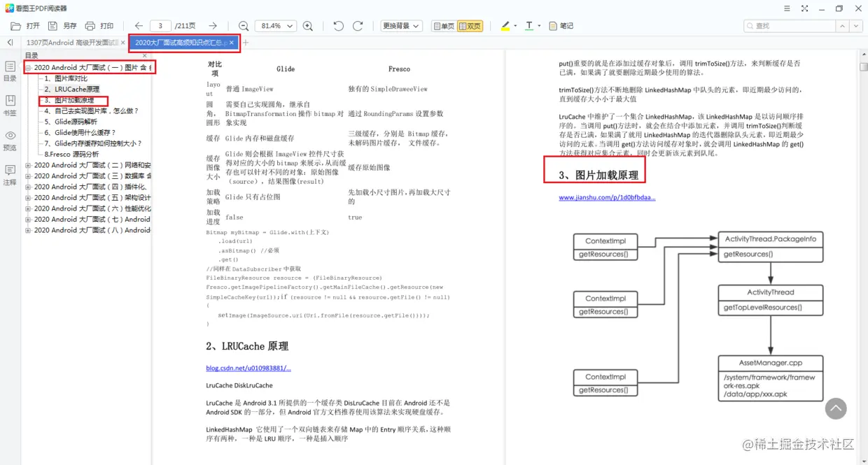 图片相关图片库对比 LRUCache 原理 图片加载原理 实现图片库 Glide 源码解析 Glide 缓存 ……