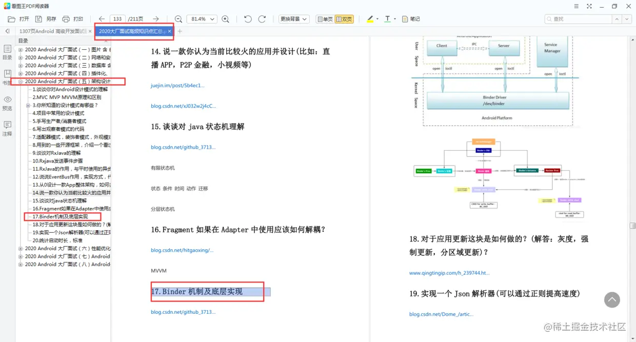 所以,面试准备中,除了基本的一些知识点还需要关注一些安卓开发实际中经常遇到的一些问题,诸如图片缓存,常见的开源框架等等。