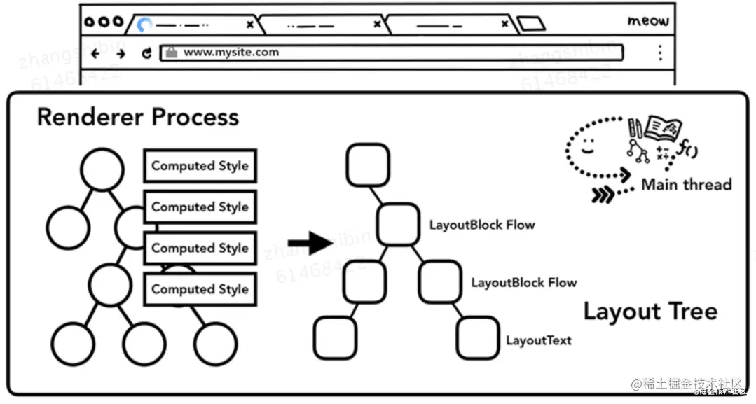 主线程解析CSS,确定每个DOM节点的样式(自定义样式+浏览器默认样式)