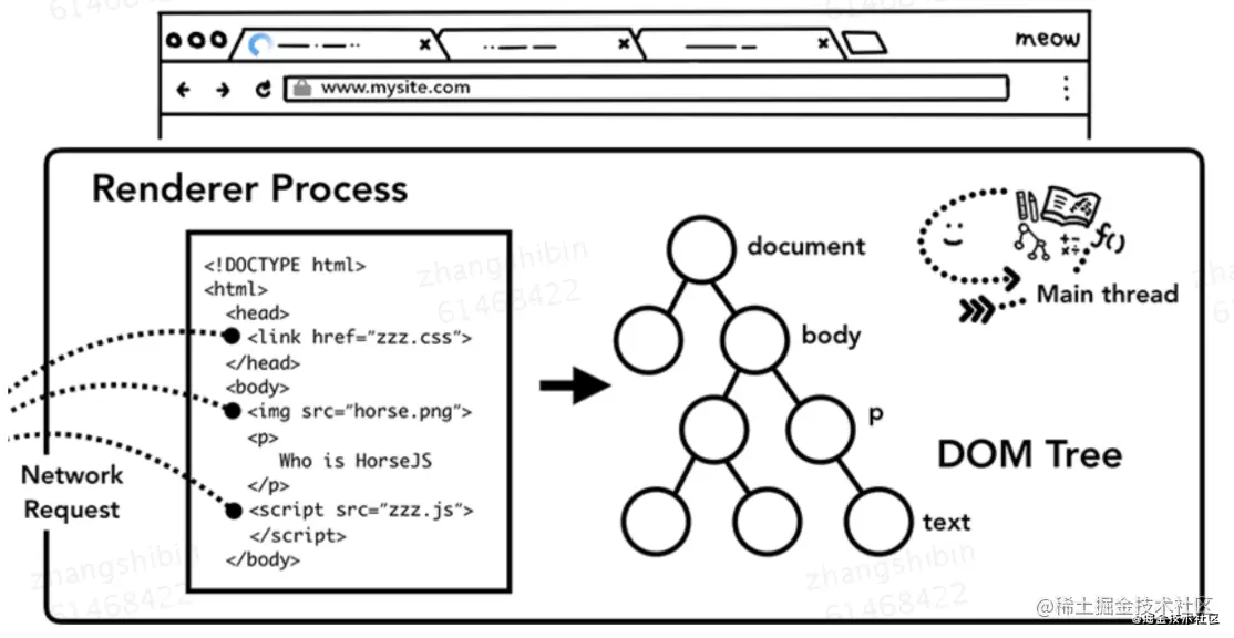 到了渲染进程之后,当我们的渲染进程拿到了html,就开始逐行解析html。