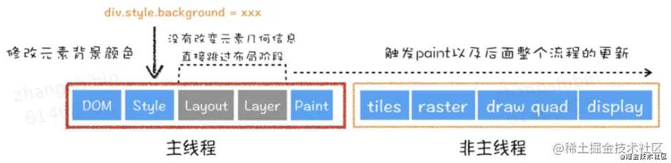 修改非几何的样式,比如颜色,仅仅会触发重绘。