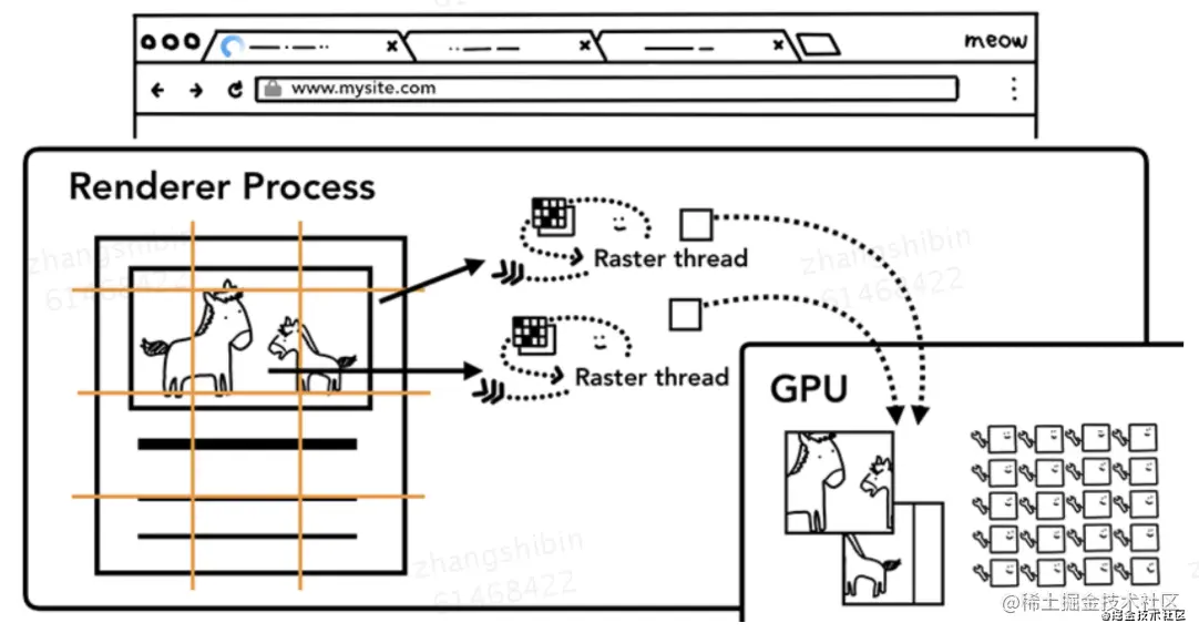 前面的五个步骤产生的都是数据,栅格化就是将数据转化为图片的过程。