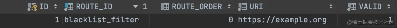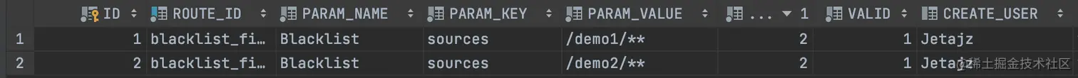 我们将 刚刚定义的 Blacklist 黑名单过滤器配置的参数存入表中