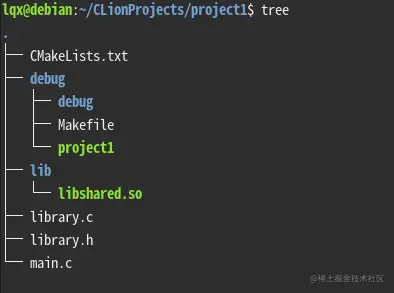 mkdir lib新建lib目录cd lib进入lib目录cmake -DCMAKE_BUILD_TYPE=debug ..指定编译模式为debugmake生成可执行文件 此时会生成libshared.so文件