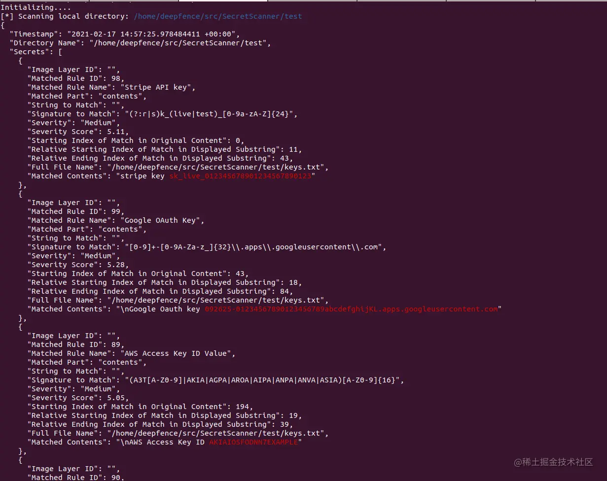 New Deepfence SecretScanner 可帮助你扫描主机上的容器镜像或本地目录,并输出包含找到的所有 Secret 详细信息的 JSON 文件。Secret 可用于访问组织的关键 IT 信息(例如:帐户、设备、网络、基于云的服务),应用程序、存储、数据库和其他类型的关键数据的任何敏感或私有数据。