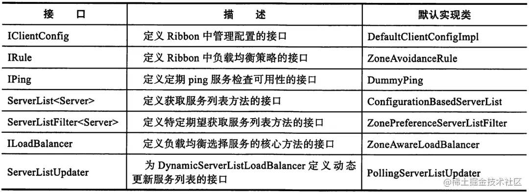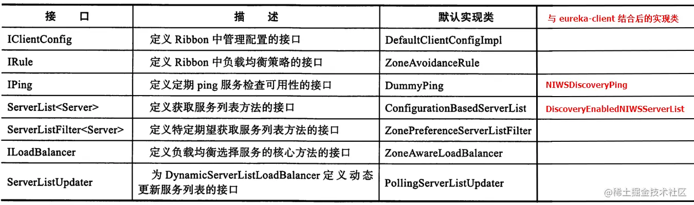 首先,Ribbon 的7个核心接口共同定义了 Ribbon 的行为特性,它们就是 Ribbon 的核心骨架。
