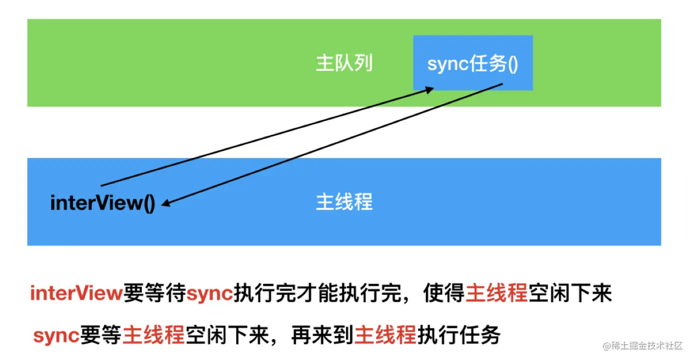 sync()任务执行完才能执行,sync()任务需要等主线程空闲才能执行