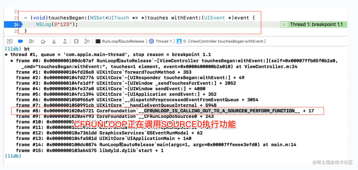 NSLog(@"%p %p", CFRunLoopGetMain(), CFRunLoopGetCurrent());