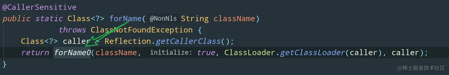 这个方法内部实际调用的是 forName0: