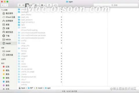 **3.**在输入以上两条指令以后,我们就可以在finder中查看灰色的文件和文件夹了。这些就是之前在mac电脑中被隐藏的文件夹。