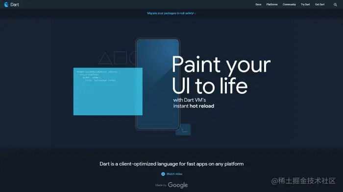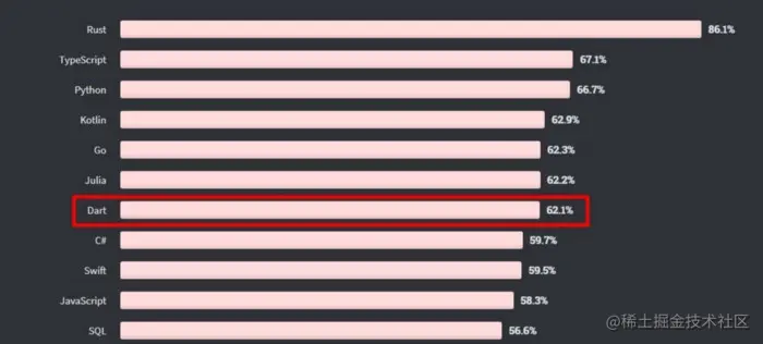在谷歌发布 Flutter 之前, Dart 还是被遗忘在角落里。但是,随着 Flutter 在 Google/IO 的发布,Dart 在移动端开发者中被赋予极大的关注。因为它可以很好的做为 React Native 的替代品。还有一些不喜欢 Javascript 的开发者也觉得 Dart 是一个不错的选择。很多大公司像谷歌,阿里等采用了 Flutter,所以 Dart 就开始火起来了。