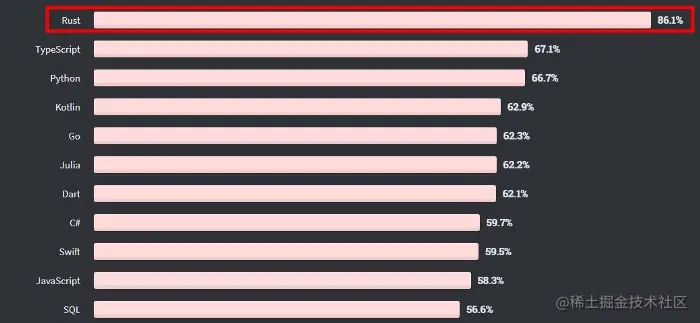 根据调查,Rust 已连续四年蝉联Stack Overflow最受欢迎的语言。这是不是超乎你想象了呢?这种人见人爱的受欢迎程度表明,有机会用过 Rust 的人都会爱上它。
