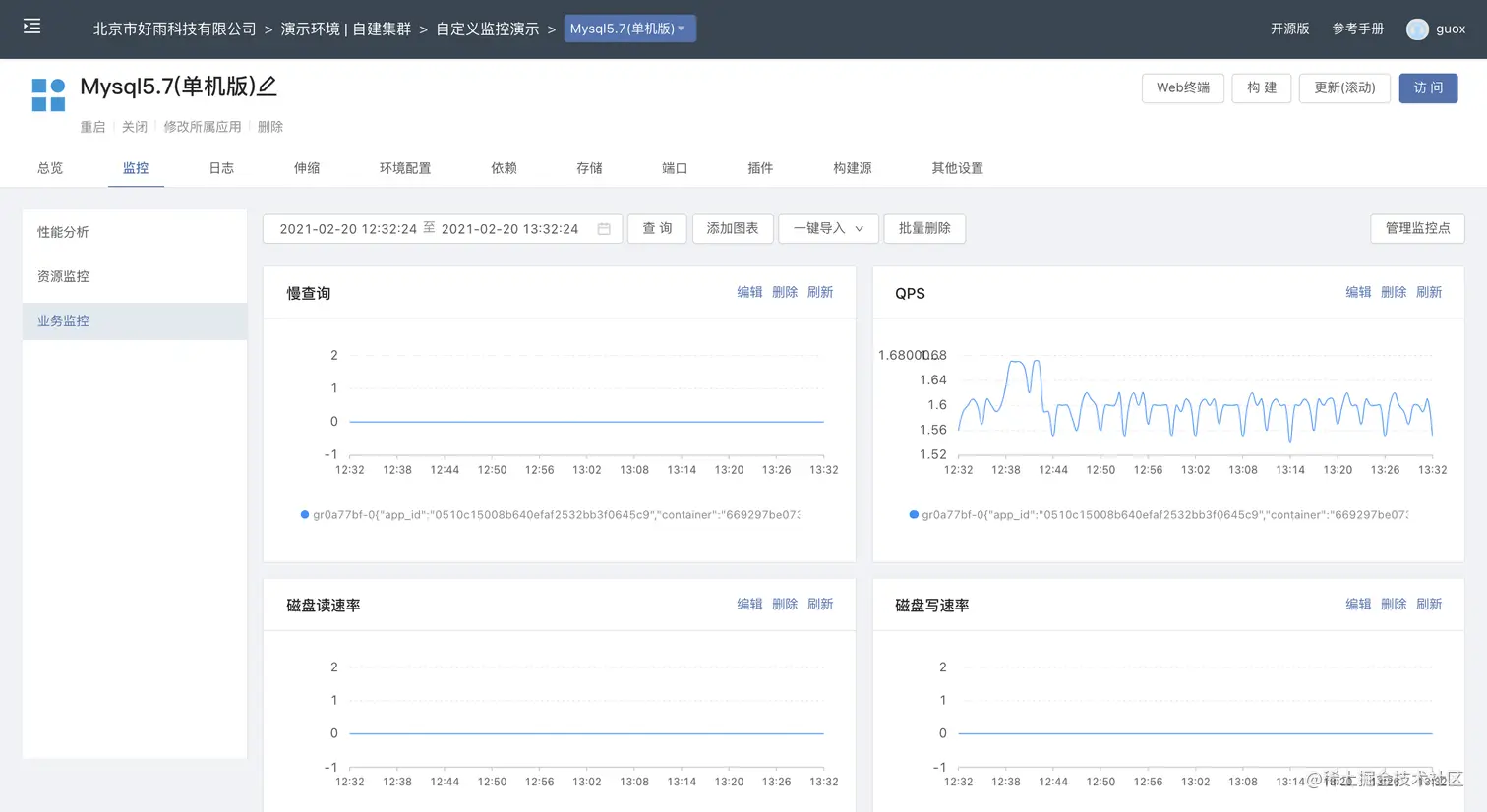 Rainbond 希望提供给开发者对应用全方位的监控能力。过去的版本中已经包括资源监控、性能分析、状态检测等维度。本次更新,提供给开发者在业务维度自定义监控及可视化的能力。Prometheus 已经成功云原生监控领域的事实规范,Rainbond 支持开发者基于 Prometheus 规范定义业务监控指标,通过配置监控点后由 Rainbond 自动发现并收集监控数据,并提供给用户进行历史数据查询和可视化。用户可以借助插件安装社区已有的 Exporter 插件,便捷的扩展业务监控能力。在自定义可视化面板中用户可以绘制关于应用资源占用、业务性能、网关流量全方位的观察指标图形。